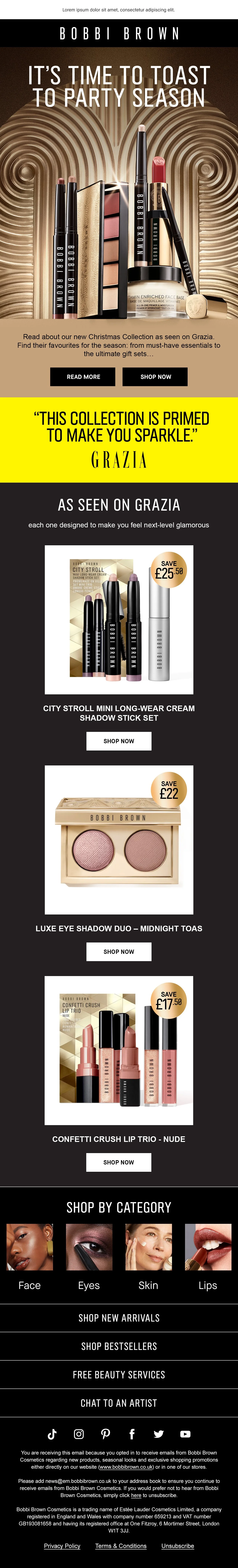 I facilitated the development of design elements that contributed to the UK BAU marketing output during the business's peak seasonal period. This was achieved by creating impactful digital assets, maintaining brand consistency, and collaborating across email, social, and on-site channels for market-leading brands like M.A.C. Cosmetics, Bobbi Brown, Clinique, and more.